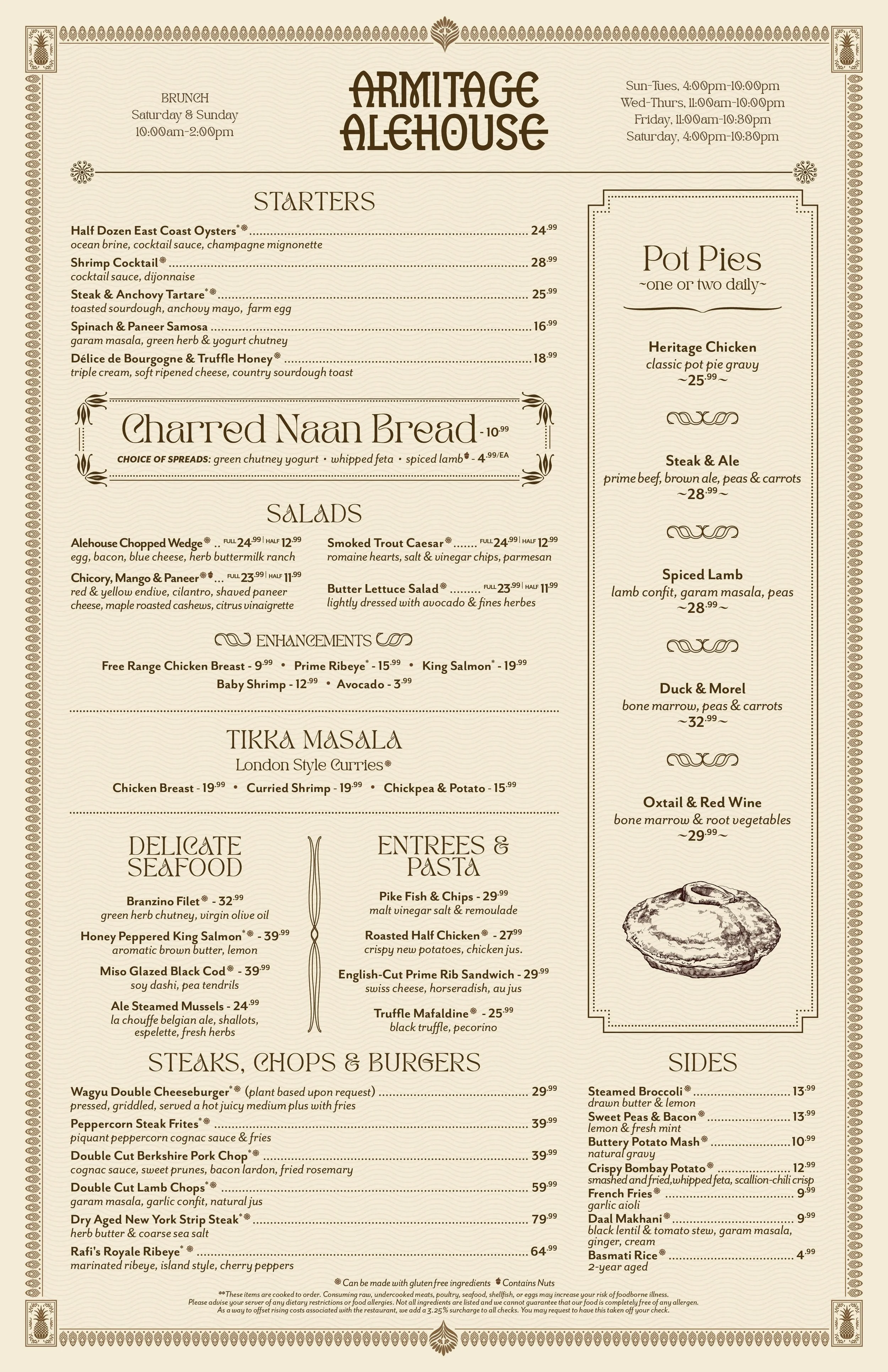 Brunch is served Saturdays and Sundays until 2pm. Full dinner menu is also available.